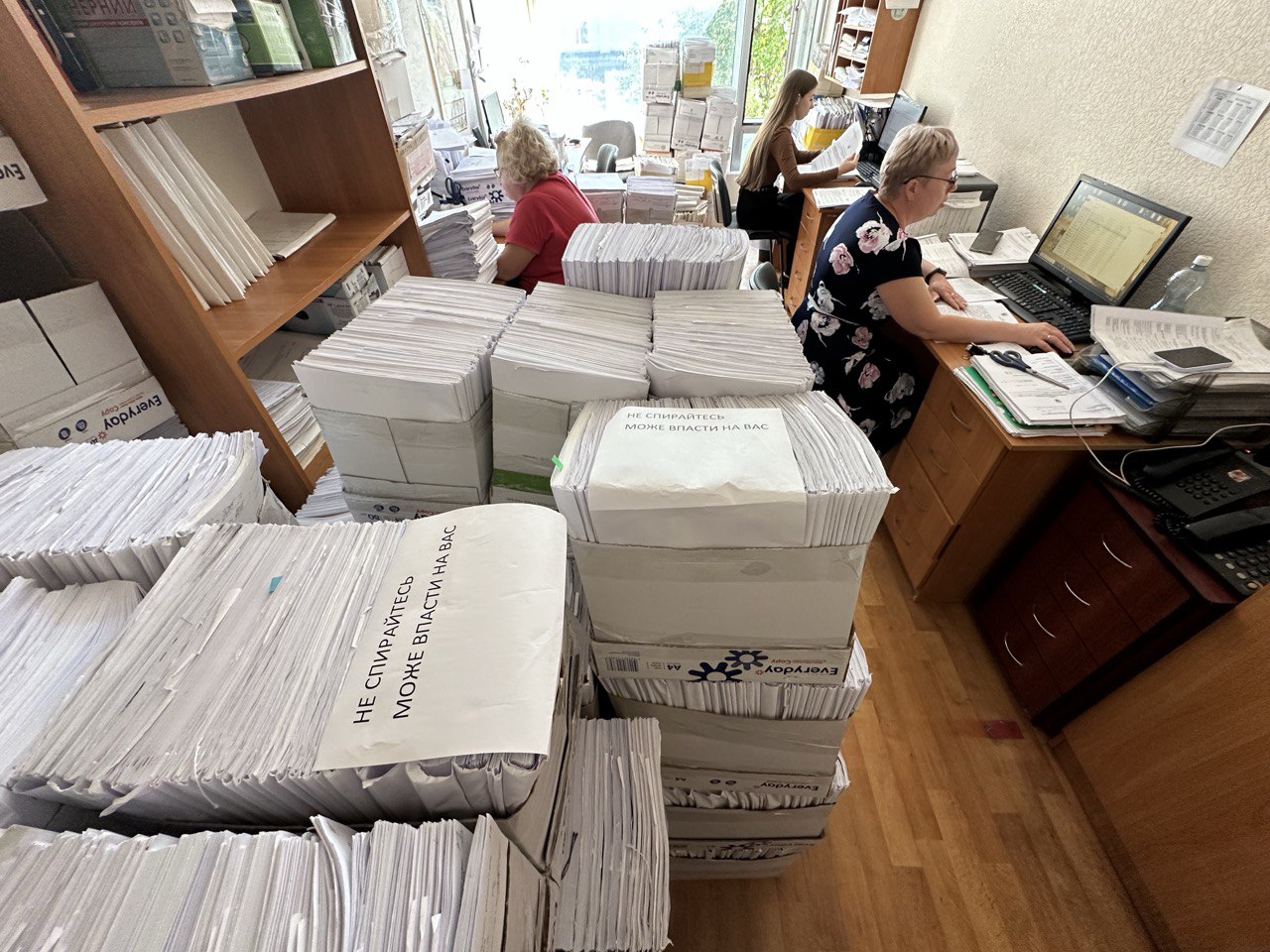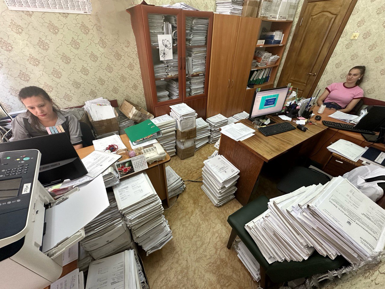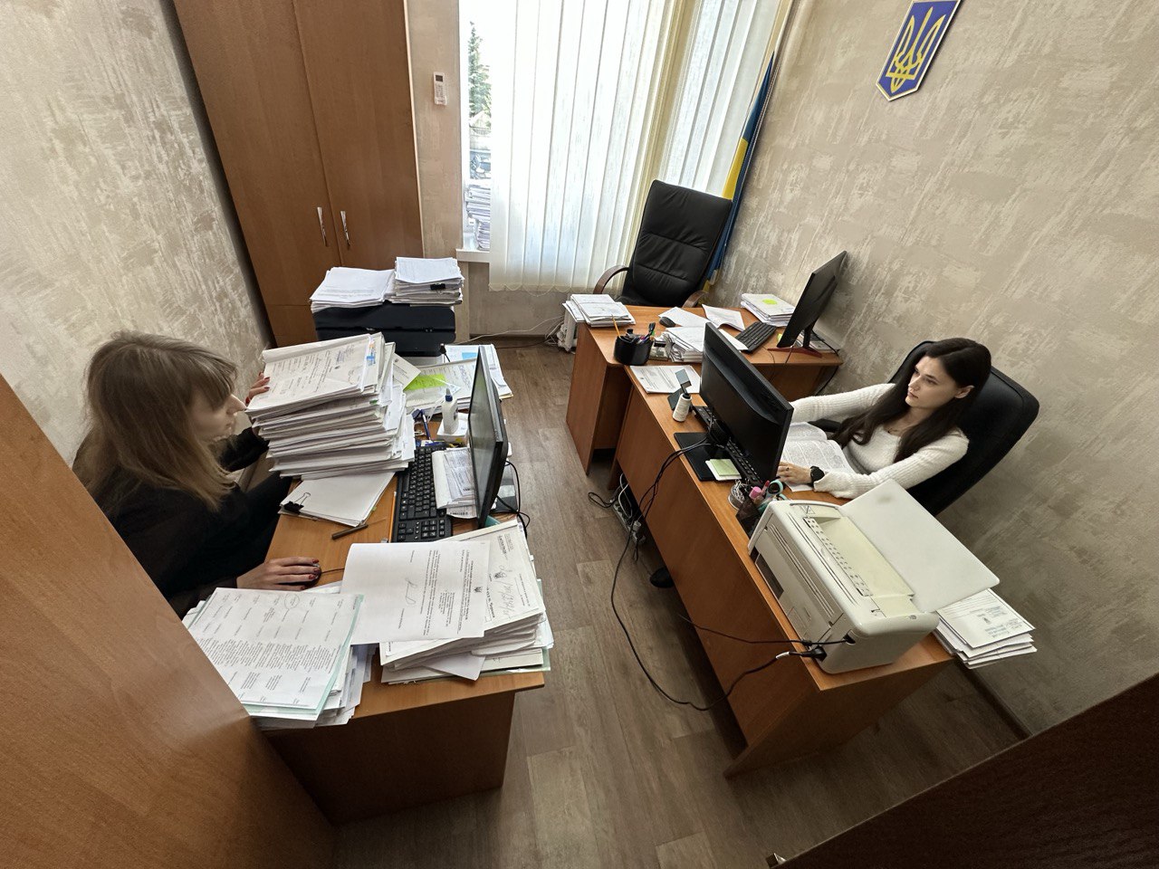 Працівники канцелярії по цивільних справах і загальної канцелярії, де реєструється вхідна/вихідна документація, теж змушені працювати в одному кабінеті. Є незручності у забезпеченні проведення відеоконференцій з іншими судами (за ухвалами, за дорученнями). Надати учасникам процесу, які приходять на відеоконференцію, окреме приміщення — поки можливості немає. Все вище перераховане не лише ускладнює процес забезпечення судочинства, а й створює певний дискомфорт для громадян, які звертаються до суду. Проблеми може вирішити лише розширення судового простору».