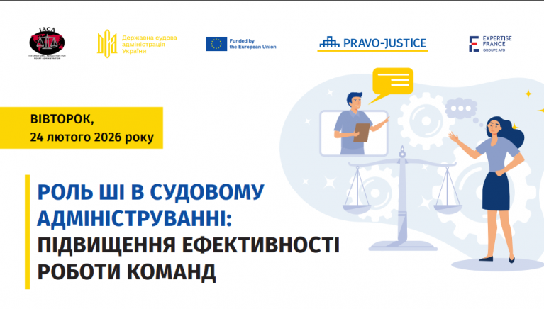 ДСА України спільно з Міжнародною асоціацією судового адміністрування за підтримки Проєкту ЄС «ПРАВО-JUSTICE IІI» 24 лютого 2026 р. заплановано проведення онлайн-вебінару на тему: «Роль штучного інтелекту в судовому адмініструванні: підвищення ефективності роботи команд»
